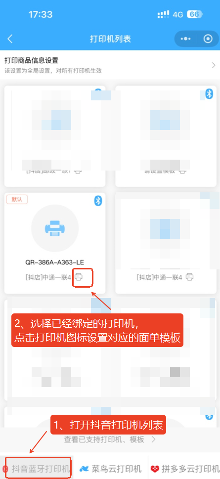 (注意:抖音订单只能使用蓝牙打印机打印;)