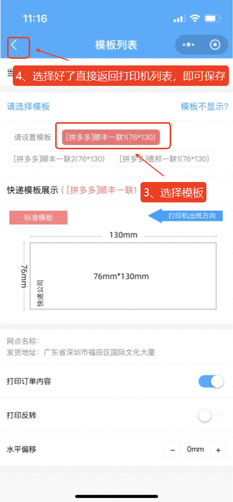 (注意:小程序添加绑定店铺成功会将店铺目前的快递模板一起同步到小程序,抖音只展示抖音平台的面单,不能打印抖店订单的其他平台模板会隐藏)