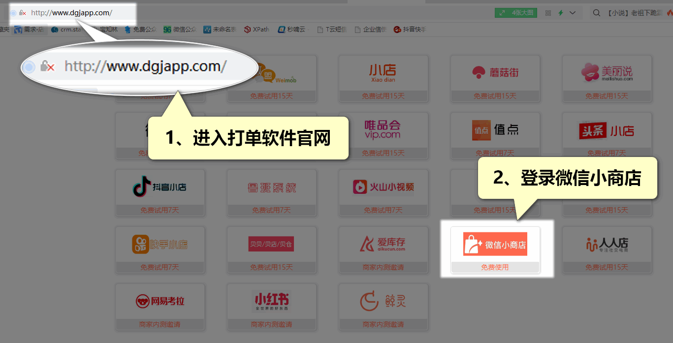 第1步:进入店管家打单平台,授权登录微信小商店。