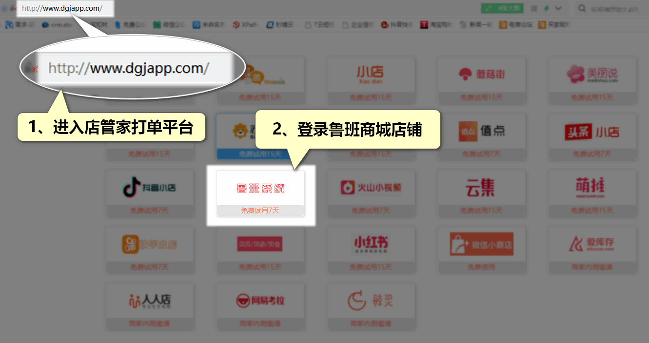 第1步:进入店管家打单平台,选择鲁班登录授权。