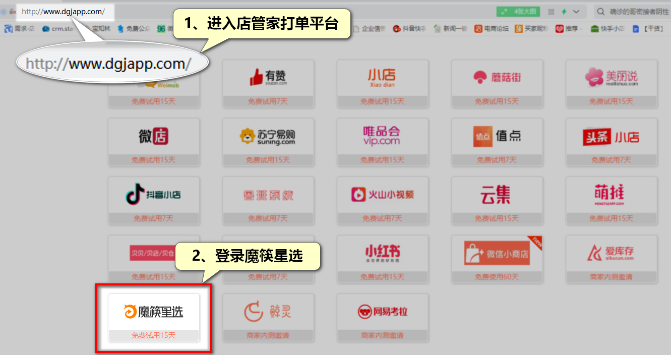 第一步:进入店管家官网,点击魔筷星选Logo图片登录。