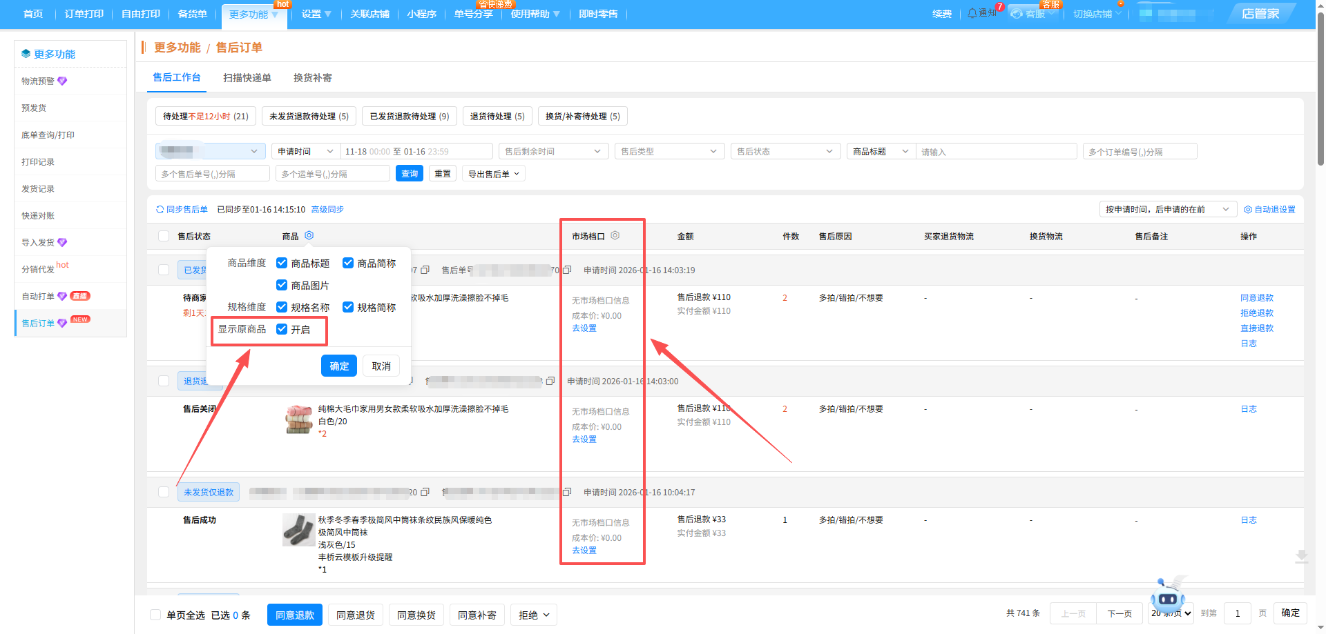 -在店管家,仅需选择您需要查看的店铺,即可查看同平台店铺售后订单信息!